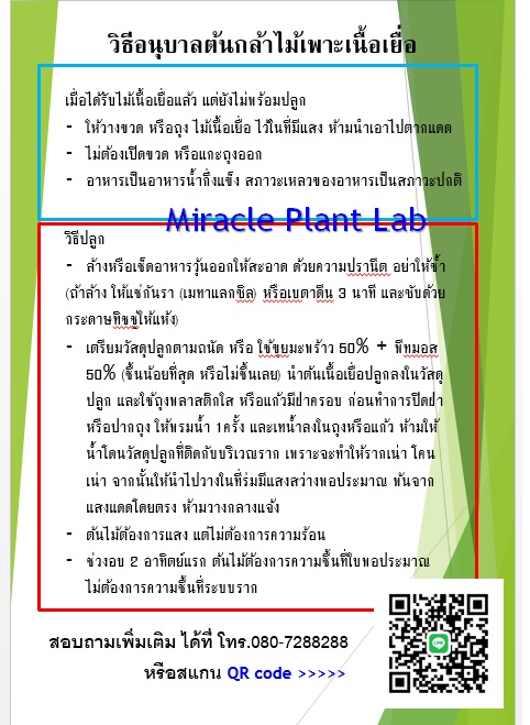 ยินดีต้อนรับสู่ร้าน Miracle Plant Lab ( ห้องปฎิบัติการพืชมหัศจรรย์ ) เรายินดีเป็นอย่างยิ่งที่คุณแวะมาเลือกชมสินค้าของเรา คุณสามารถเลือกชมสินค้าที่เราคัดสรรมาให้ได้เลยทันที หากคุณมีข้อสงสัยเกี่ยวกับตัวสินค้า สามารถติดต่อเราได้ทางปุ่มติดต่อ-สอบถามมุมขวาล่าง